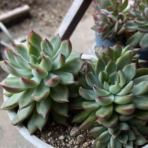 我が家のエケベリア四天王🤣🤣 冬の寒さにも平然としていた😊 そして夏の暑さにも全く動じない、とっても強い4人💕 ファンクィーンがちょっと徒長気味だけど、許容範囲内ってことにしとこ🙄