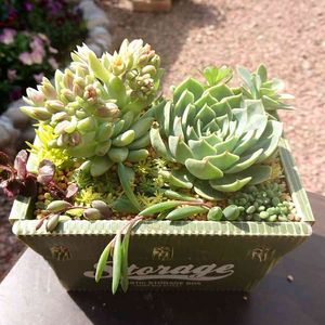 時計回りで🕐 【セダム属 黄麗】 Sedum adolphi 'Golden Glow' 【クラッスラ属 星の王子】 Crassula perforata 【クラッスラ属 火祭り】 Crassula americana 'Flame' 【セダム属 サンライズマム】 Sedum 'Sunrise Mom' 別に植えていた 黄麗とサンライズマムは、 秋の初めにかなり蒸れました 体感で涼しくなったからと思い、 断水で弱ってたところへ 油断してお水をジャブジャブ あげたのが原因かと(。>д<) 何故かこの寄せ植えだけがセーフ 🍁来年の教訓🍁 初秋になっても油断しないwww