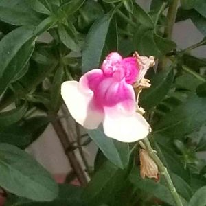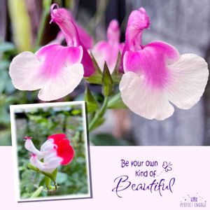 🍀サルビア ミラージュ ローズバイカラー🍀 昨日お花を買いに連れて行ってもらったんだけど、 めぼしい物がなくて残念でした。 変わった色のチェリーセージだなと名札を見るとサルビア・ミラージュ・ローズバイカラーと言う長いお名前でした。 好きな色合いなので葉っぱが少し傷んでいましたが買っちゃった。💕