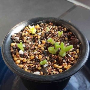 先日リトープスミックスとモニラリアの種、ポチッとしちゃいました🎵 届いたのを見てビックリ👀‼ 塵❔💦砂の粒❔💦 鼻息🐽💨で飛んで行きそう😅 で…息を止めてタネ蒔きしましたぁ😵💨 3日目位から発芽が始まり、 ちっちゃなちっちゃな双葉ちゃんが🎶可愛い💝❗ 現在10日目 発芽率リトープス70%モニラリア60%🙌