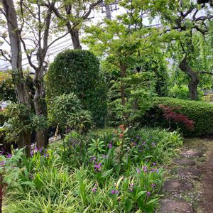 シラン咲いてきました♪ シャガは終わりかけ 敷石にはロンギカリウス