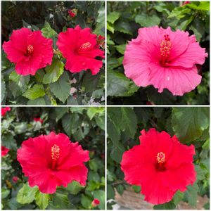 今日のお出かけ先 銀行の前の フラワーポットで 真っ赤なハイビスカス🌺 かなり大きく育っています