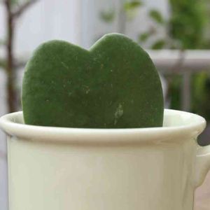 ハートホヤとも呼ばれるホヤ・カーリーの葉挿しです🌱 鉢カバーメインで見えないですけど😅 葉挿しの状態で購入したので根が出てるかはわからないのですが、ネットで調べる限り成長はしないみたいですね🧐