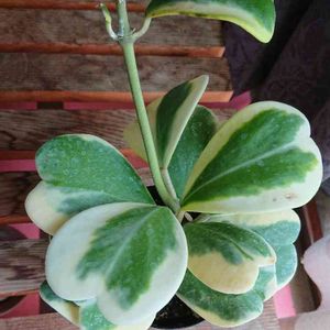 ラブラブハート♥️こと、 ホヤ ケリー(斑入り)さんです。 今か今からと待ち侘びていた蕾も無事開花🌸 琥珀色の甘い蜜も出しています〜✨ ケリーは葉の裏に向かって花座が出るので、 花の奥の綺麗な葉は別株のもの😁 葉と花が一致するように一緒に写しました✨ 産毛のあるアイボリーの花弁は後ろに反り返り 中央の赤い星型のCORONAの先端から蜜が出るんですね。 ホヤはツルが長く伸びて花を咲かすので、 買う時にツルの長いもの←これが重要です!
