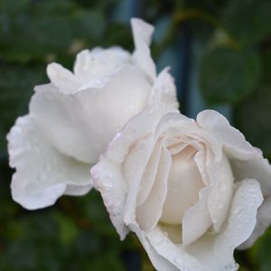 薔薇 パブロワ꧁´・ω・`꧂ ややグレーがかったシルクの様な質感の白色。 大輪ロゼット咲き。 四季咲きの強い半つる性。 と、ラベルには記載。 ウーン(꒪ȏ꒪) アイボリーっぽいかな💦 香りは甘い香りかな…。 ご近所の金木犀の香りが強くて😰💦 大輪ロゼット咲き。