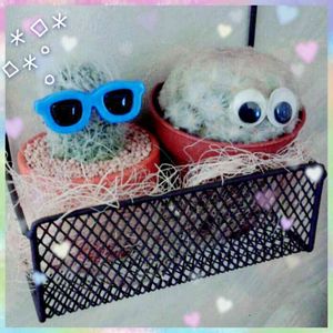 •*¨*•.¸¸♬︎お似合い~•*¨*•.¸¸♬︎ 痛くないミニサボテンを連れてきたので、を掛けて並んで貰いました(ू•‧̫•ू⑅)♬
