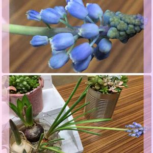 2月20日暖かい仕事場の事務所に 置いている金魚鉢のムスカリくん一番 に咲きました順番からして次はヒヤシンス にチューリップかな \(^-^)/
