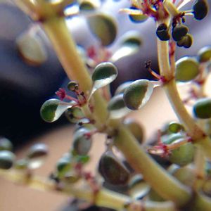 グロボーサが紅葉して茎まで赤くなったと思ったら… 白いポチポチしたものが数ヵ所に付いてました😓なんだろう💦