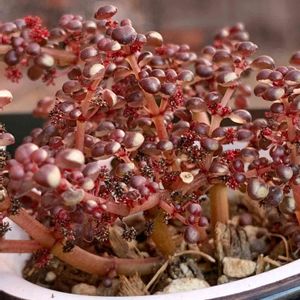 😃かなり増えました。 今週末はカットday❗️と決めているので、時間があったら少し間引けるか様子見てみよっかな。 《覚書》 ・左上の真ん中の茎が細いのは最近伸びて来た物。 ・ポットに挿さってたのは、前にポキっと取れちゃったやつを挿し木しました。 んー。今まで順調だったのに、水やりの間が開いてしまったので気になって見たらやはり怪しい。→直横植えに切り替えた。 ・今の時期なら触ってもポロポロと葉が取れる事は無い。 (真っ赤な紅葉時はポロポロ悲惨😭)