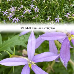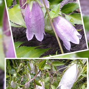 おはようございます(╹◡╹) GSの今日のお花ホタルブクロ❣️ 白は 雨で濡れて残って咲いている、家のお花です💧🤍 紫と薄紫は 道端で出会ったお花です💜 🏷青いお花と雫2021
