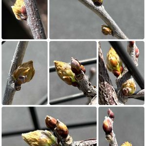 藤(フジ)です🌿 ①今日の写真です ここまできたら素人の私でもわかる、花芽ですね!良かったです、良かったです🏵️投稿を書き換えたり削除したりして自信がなかったんです。花芽の下の方に葉のようなものが見えたから💦初心者なので😓芽がここまで伸びて、芽が大きいのと小さいので見分けられますね。花芽は直径1cmくらいの蕾、葉芽は3mm〜5mmくらいの蕾。上と左下の写真で大きいのは花芽で、小さいのは葉芽ですね。右下の写真は葉芽だと思います。 ②先週の水曜日の写真です。一番自信がなかった時期でしたが、やっぱり花芽で合ってました。 あとはキレイに咲くかどうか。
