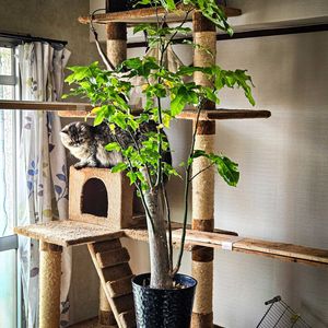 ブラキキトン アケリフォリウス ぽちょも参戦。にゃんこズ3兄妹揃い踏みです。 幹がボトル状にはならないボトルツリーの一種。 夏の終わりに葉っぱが全部入れ替わります。 急に全部の葉が黄変して落ち始めるので根腐れかとびっくりします。 寒さに弱いと言われますが、冬は落葉して屋外でも越冬しています。