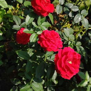トゥルーブルームレッドキャプテン🌹 コンパクトで気軽に育てられるバラ。耐暑性 耐寒性に優れいつも 咲いてくれてます😆雨にも強い❗️黒星病 うどん粉病 知らず😤