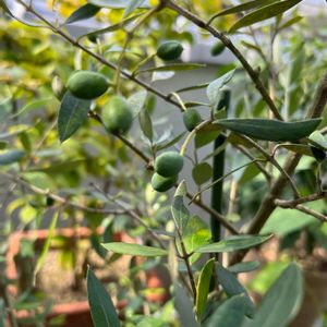 南欧風ガーデンの憧れから数年前に購入したオリーブ🫒 耐寒性が無いので冬は屋内待機中。…かなり成長ゆっくりですが、一年前の写真と見比べると確実に大きくなってきてます🫒 品種ラベルが外れちゃったけど樹形から、左がコロネイキ、右がミッションかな? 今年は実をつけて欲しいものです💦
