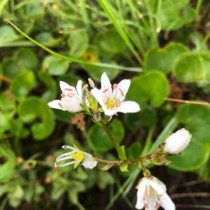 岩銀杏・水銀杏 ミツガシワ科 イワイチョウ属 草丈 20〜40cm 花期 7〜8月 鳥海山には 偽高山帯(雪田植物帯)がある。 雪解けの高山草原に生える岩銀杏の葉は、イチョウの葉に似ている。 秋には黄葉して美しい。 多年 2020.7.29.