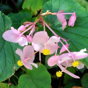 秋の気配🍁🍂 ①②③シュウカイドウ(秋海棠)☘️🌸✨🌸✨☘️とミズヒキ🔻🌸🔺🌸🔻🌸🔺 ④⑤斑入りヤブラン❇️💜💟💜💟💜❇️