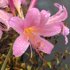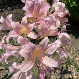 夏の暑い盛りに 花茎の先に 数輪の淡い 桃色の花が咲きます💕 夏水仙 ヒガンバナ科