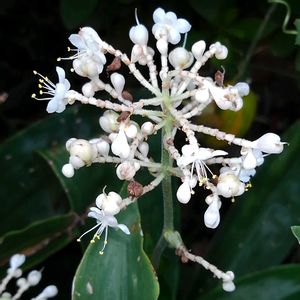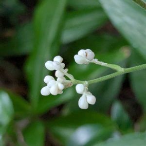 ヤブミョウガ(藪茗荷) Pollia japonica 庭に自生したヤブミョウガ。なんかいい感じの葉っぱがぐんぐん育つな、白い花が咲いた!と思っていたら、黒い実もできているのを発見💡 GSで名前を調べてみたら、ヤブミョウガでした。雑草として抜かずに残しておいてよかった☺️