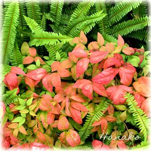 🍀オタフクナンテン🍀 🍀ネフロレピス?🍀 最近、多くの植え込みで見かける お多福南天が色づいています❣️ 雨が続きます 皆さま、今日もお元気で😊