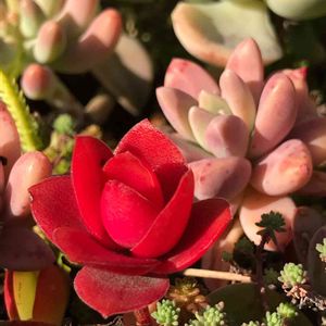 DAISOで買った多肉 「火祭り」 緑だったのが 赤く紅葉🍁してるよ。 たくさん 群生させたいなぁ