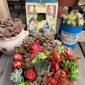 待望の紅葉する多肉植物をお迎え やっと出会えて嬉しいです💕 他店で少しピンクがかった斑入り葉を見かけ なんだろう?と気になっていました。 タグもなくて名前もわからず、、、。 それが、こんなに綺麗に紅葉する「火祭り」だったとは〜!? 名前もわかって嬉しいです。 キュートな取って付きの入れ物も使うチャンス到来 早く可愛く飾ってあげたくて、 二駅先まで買いに行きました。 早速入れてみたら、、、すっぽり収まり う〜ん、なんて可愛いんでしょう😍❤️ とりあえず在庫の5個を買い占めてきましたが そのうち東側のフェンスにずらっと 並べてしまいそうな予感、、、(((o(*゚▽゚*)o)))♡ 風に揺れないよう固定が必要かな、、、。 そして、気になっていたハルオチアも初めてゲット そちらは次に載せますね〜 火祭り、火祭りの光