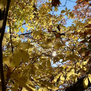 観察会で教えて頂きました 11/19pic 3小葉の掌状複葉のタカノツメ(鷹の爪)の黄葉と 看板🪧のあったメグスリノキ カエデの仲間で紅葉するようです🍁 タカノツメは冬芽がタカ(鳥)の爪を連想させるとして名付けられたそうですね 🏷️木曜日は木