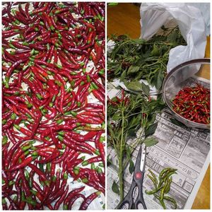 🏷真っ赤な火曜日 またまた鷹の爪🌶で参加します。 1本目がすっかり乾燥したので2本目の木をチョキチョキ✂ ちょっと小ぶりですが、青い実がほとんどありませんでした。