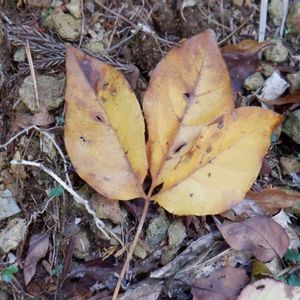 タカノツメなのかなあ? 葉柄が殆どないのでなんだか違う気もしています。 タカノツメの若い葉が黄葉したものだと教えて頂きました。 場所:愛知県民の森