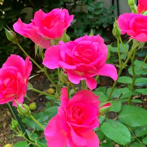 ショッキングピンクが鮮やかな薔薇🌹 四季咲き"ローズうらら" 春の花後もシーズンを通して秋まで咲き続けます 鮮やかなショッキングピンクが魅力的な薔薇です🎶