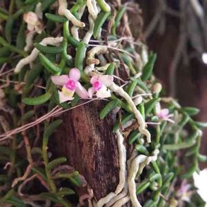 野生のムカデランを水苔に着生 可愛いピンクの花が咲きました。 小さいので、拡大しないと なかなか、見づらいですが、 可愛い花です。🌸🌿