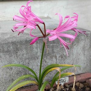 ネリネ(ダイヤモンドリリー)のボーデニーが咲きました 思ってたより早い時期の開花です ボーデニー2球・クリスパ2球植えましたが、球根が腐ってしまい 結局残ったのはボーデニー1球のみでした😅