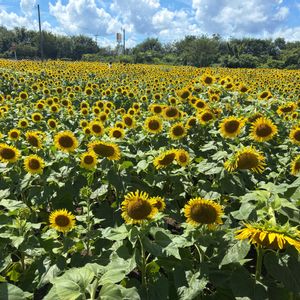 🌻向日葵🌻 今年最後のひまわり畑を見に行ってきましたー🚗³₃ AIで近場でもまだ咲いているところを探しました|•'-'•)و でも、もう終わり近くて頭をぐったりもたげている子たちが多かったです… 帰りに食べたソフトクリーム🍦 美味しかったけど、秒で溶けて食べるのが大変でしたー(¯―¯٥)