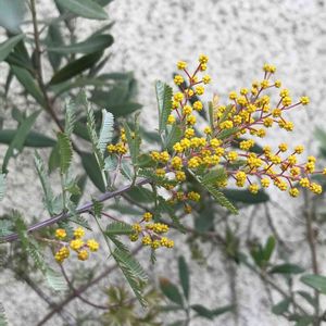 ☀️こんにちは😃 今朝は冷えましたがお昼近くになると 暖かくなりました🤗 小春日和も今日までかな🤔 今日のお花『アカシア』 新芽が紫色になる品種の 【アカシアプルプレア】です 春は紫色が色濃く銀青色の葉のコントラストが美しく楽しめるそうです🎶💕 昨年12月24日に50cm位の苗を地植えして丁度一年です 今は170cm位に大きくなりました 花が咲くのはまだまだ先と思っていたので蕾を発見した時は(やったー❣️)とても嬉しかったです♪ 春に黄色のお花を見るのが今から楽しみです🤗🌼🌼🌼🌼🌼🌼🌼🌼🌼🌼🌼