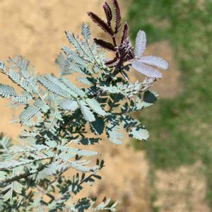 ギンヨウアカシアプルプレア お出かけ先の園芸店にて。ずっと気になっていたプルプレア初めて生で見ました👀✨ 紫の新芽がおっしゃれ〜!蕾がたくさん。もうちょっとしたらまた来よう。