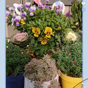 昨日picしたうららちゃんに✨🎁✨してもらった子✨ 可愛いリメ鉢はとまとちゃん作✨ 鉢ごと一緒に✨🎁✨してくれました😊 どうもありがとう~❣️ 外は雪❄️がちらついているので室内でいてもらっています😊 室内に入れきれない多肉さんたち… ビニール温室の中に不織布をふんわり二重にきせています なんとか❄️乗りきって欲しいな🙏