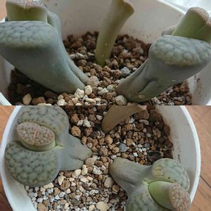 何気なく明るい場所へ移そうと鉢を動かしたら葉が1枚ポロリ…😭 よく見たら新芽の葉でした…( ´›ω‹`) 日当たりと風通しには気を付けて窓を空けておいていたので、多分水が足りなかったかもと慌ててたっぷりお水をあげました💦 買ってきて、植え付けてから約1週間、葉も肉厚だし大丈夫かなとお水を1滴もあげてなかったので乾きすぎたのかも知れません…😞 それか寒かったのかな…? 他のホープやグラベラ、オブツシフォリアは変化ないのにこの子だけ葉落ちを見てしまいちょっとショックです😰 水やりのタイミングってやっぱり難しいです(>_<;) 今はお水をあげた直後なのと天気も良いので室外の日陰に置いてます(;´・ω・`)