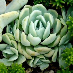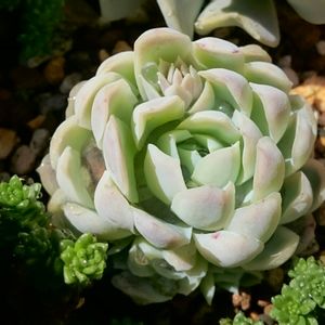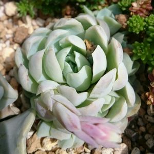 先月名前を皆さんに聞いた多肉です。花月夜、ラズベリーアイス、月影。一番月影に似ていると思いますので月影(仮)ということにしました。ご協力いただいた皆さんありがとうございました。 (仮)ですので、もっと似ている多肉を知っていれば教え下さい。エレガンス系?は判別が難しいです。