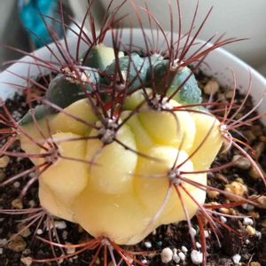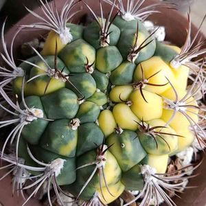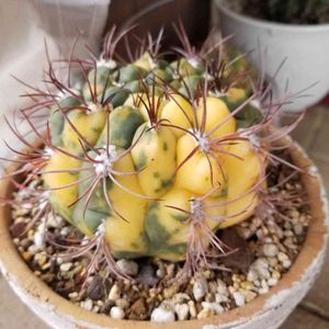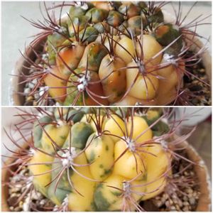 お久しぶりの真夜中投稿🌙.*· その❶です 新天地錦 さん✨ Gymnocalycium saglionis f. variegata 植え替えから2週間以上過ぎてしまった そろそろ水やりしとかないと😅 で、久しぶりに赤いトゲが見たくて・・・ 上からザバーっと水やりしました😆✨ 久しぶりの赤いトゲ、綺麗でした(*´艸`*)💖 ずっと赤いままでも良いのになぁ😍 根っこがちゃんと動き出したら シワの部分も治るのかな?🙄 10年近いブランクを経て、久しぶりに パートのおばちゃんになったので・・・ いまいちペースが掴めずにコメントや いいね!が遅れています🙏💦💦