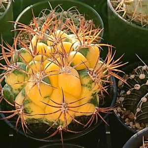 サボテン科 ギムノカリキウム属 新天地錦。😽😸 いつもと変わらない癒しがあります。😆 赤刺が魅力的な新天地錦さんです。😋