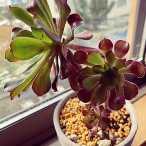七福美尼さん🌱 今朝は❄️がチラチラしてたけど☀️が出てきたのでパシャ📸 開き気味だけど可愛いな✨ これから❄️の予報。 多肉に☀️を浴びさせたい(-.-;)y-~~~