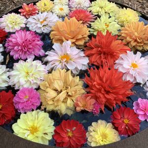 今年も菊の花が一斉に咲いたので花手水を作りました🌼!妻の生け花用のオシャレな鉢を拝借して浮かべてみました!