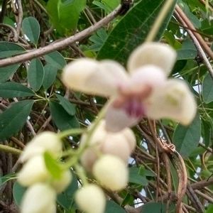 1日遅れました😥 🏷️毎月8日は葉っぱの発表会 ① アケビ 木通 通草 秋には実が食べられます ②③アオツヅラフジ 青葛藤 カミエビ アオツヅラ 実は有毒です ④⑤リースにしてみました