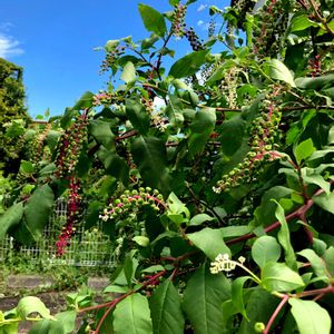 逞しさと美しさに仰天🙀❗️ "ヨウシュヤマゴボウ" 建物とコンクリート🅿️の隙間から勢力を伸ばしています🌿 初夏に咲く白く小さな花の集合体が成長に伴い徐々に垂れ下がっていきます 色や形も変化していき、実が熟すにつれて黒紫色に変化していきます🫐 茎は赤紫色を帯びているので熟した実とのコントラストがステキ☺️ この美しい姿に魅せられて生花にも利用されるそうですが 全草に毒を有しているので、果汁が洋服や指などに付かないように注意が必要です ヤマゴボウ属(洋種山牛蒡) 別名 アメリカヤマゴボウ 要注意⚠️ 食用になる「ヤマゴボウ」とは別物 2025.07.20