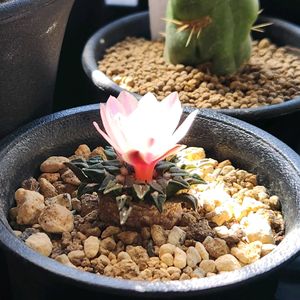 コーデックス(根塊植物)もやっと外に出せました。 代わりにエケベリアが半日陰。ごめんね。 パキポディウムとオベスムの幼苗、それぞれ1つずつ、冬を越せなかった…ごめんね🙏