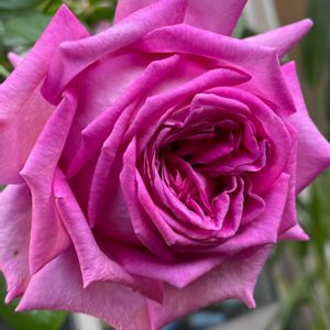 香りがとてもいい シャルトゥール・ドゥ・パルム 大きなお花をつけています💓 曇天だと青みがかったパープルの色がよく出るんだけど、今朝はちょっと明るい感じに写っています😊