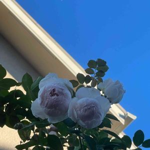 またまた高い所で咲いてるクリスティアーナの三兄弟🥰 開くのか、開かないのか…ちょっとヤキモキ 今朝は抜けるような青さの中、白い飛行機が高いところを飛んで行くのが見えました 写ってるけど…わかるかな?