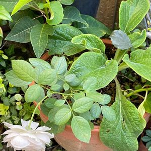 本日2枚目の投稿 我が家の挿し木事情😁❗️ 可愛らしいパシュミナちゃんはいつの間にかこぼれ種で大きくなってきたジギタリスと、これまたポキッと折れてしまったのを挿しておいたプリンセチアと同居しております👍お庭が狭いから土があればどこでも挿すのでね😁 バラを剪定すると、良さげな枝をあちこちところ構わず挿しておくのでお花が咲くまで何が咲くのかわかりません😅 でもまあまあの確率で挿し木に成功しております😊 寒くなる前にプリンセチアを鉢上げしないといけないから、パシュミナちゃんももうすぐ独立です💕