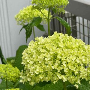 アナベルがライムグリーンから少しずつ白くなってきました🥰 かわいい 雨が降ってますます生き生きしてます