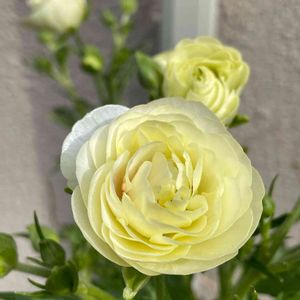 ラナンキュラス ラックスのニノスが咲き始めました 白い花びらのどこかに少しピンクが混じる 真っ白と言うよりはクリーム色 咲きはじめの姿からは想像出来ないくらいこれからどんどんお花が咲いてきます ラックスにハマって3年目 これはとても育てやすくてオススメです😊👍