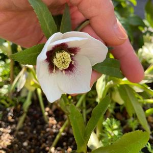 地植えのクリスマスローズ1番開花 ホワイトフラッシュのシングル 17年くらい経つかなぁ〜 その時はこんなに世の中がクリスマスローズ熱が高いなんて知らなかったなぁ😁